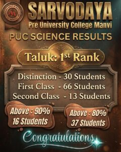 Education is not just about academics; it is about fostering a well-rounded development of the mind, body, and spirit. At Sarvodaya Group of Institutions in Manvi, we are committed to providing a transformative education experience that equips students with the knowledge, skills, and values needed to excel in a dynamic world.